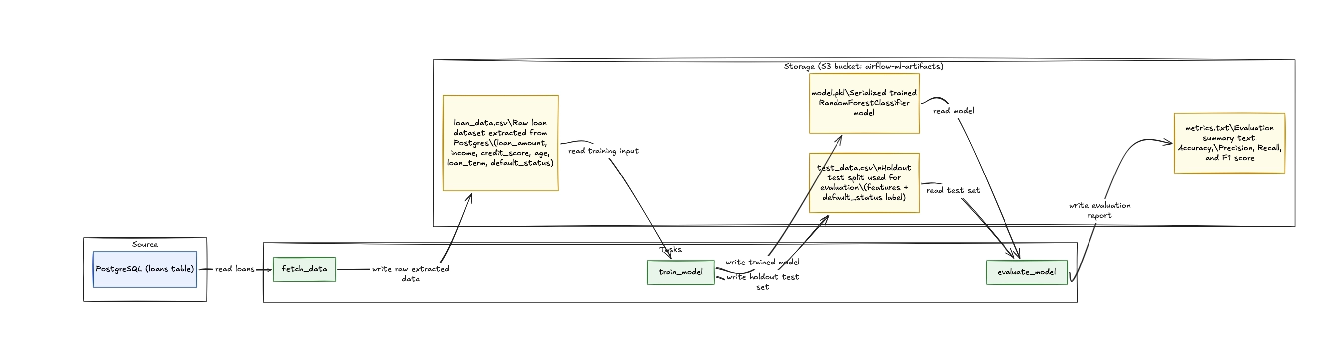 - Fetch data - Retrieve loan records from PostgreSQL and store the dataset in S3.